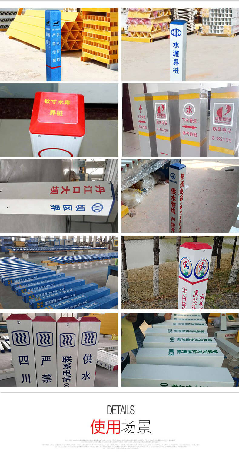 水源界樁_供水管道玻璃鋼標志樁_下有管道警示標識樁