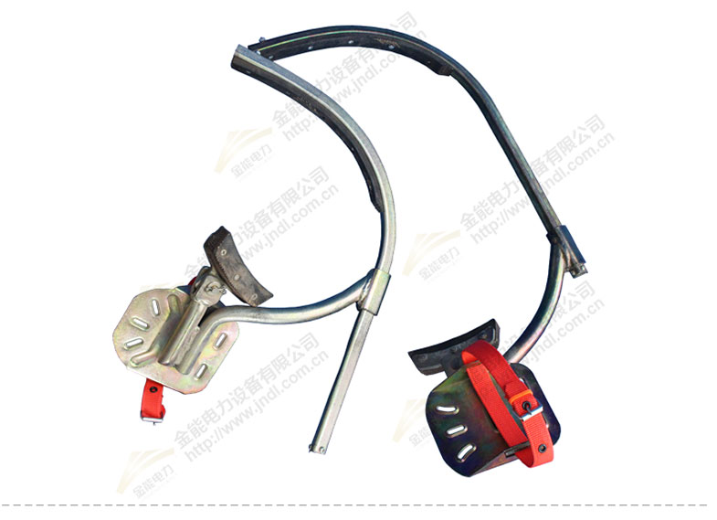 腳扣是攀登水泥電桿的主要工具之一,用腳扣的半圓環和根部裝有橡膠套或橡膠墊來防滑。