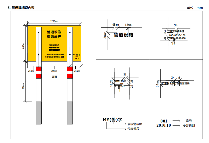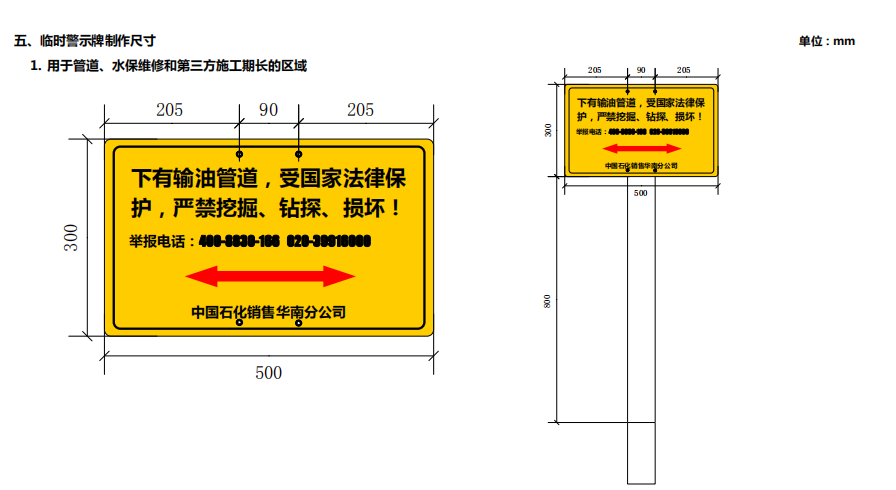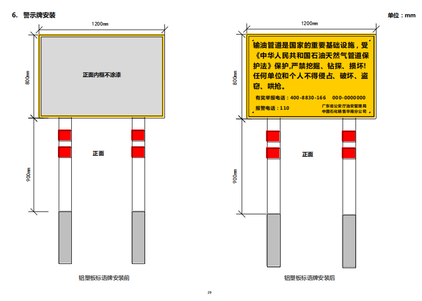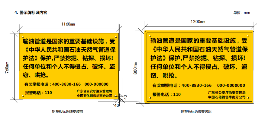 輸油管道線路標志牌規(guī)格尺寸,輸油管道線路警示牌圖集